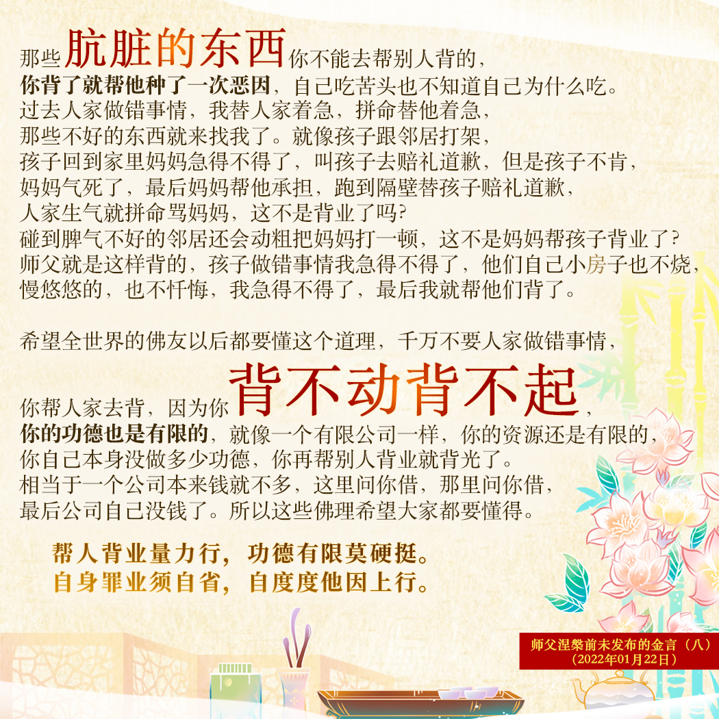 留言板内容仅供参考,具体以師父相关开示为准!各人业障各人自己背!