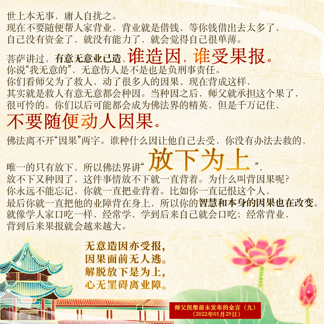 留言板内容仅供参考,具体以師父相关开示为准!各人业障各人自己背!