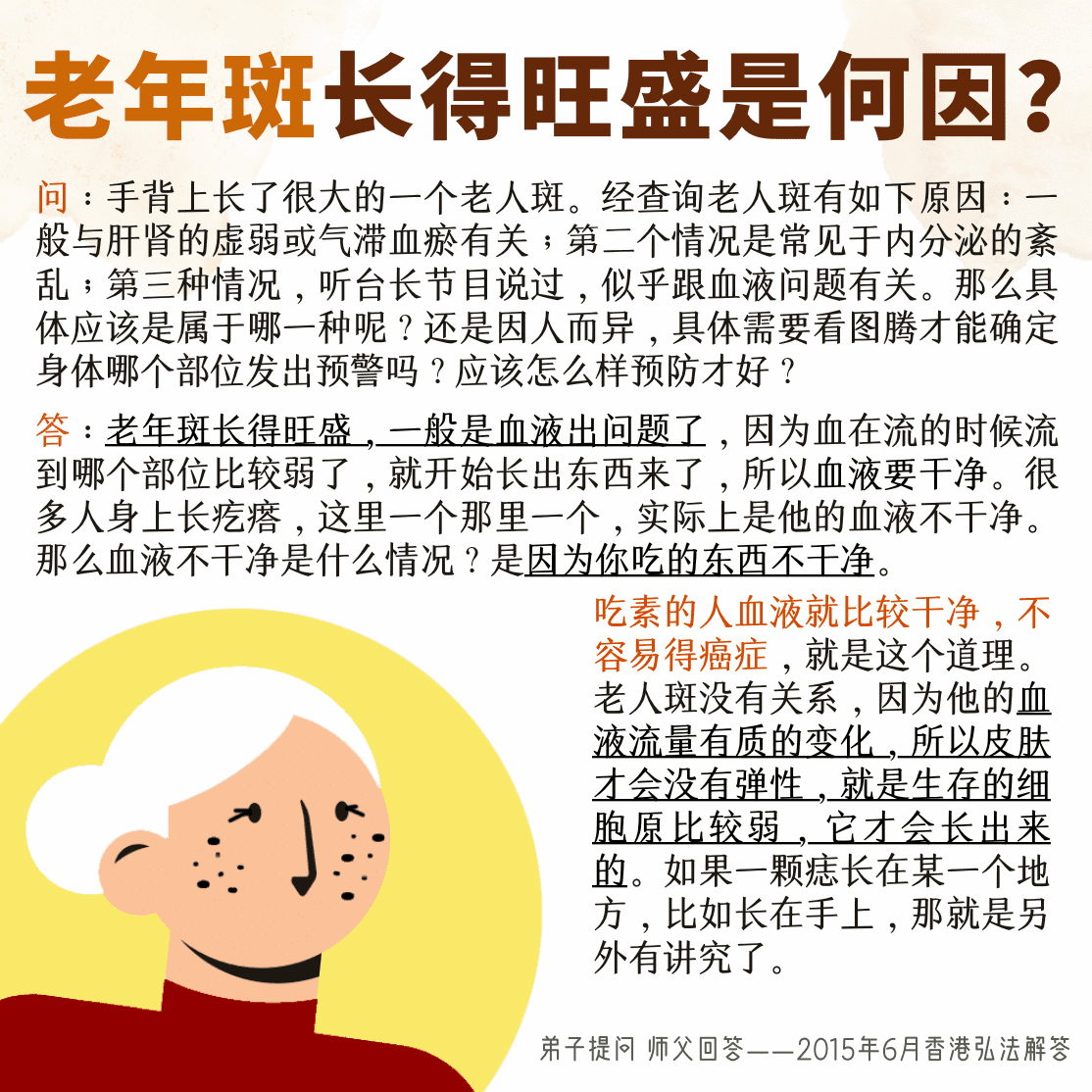 男听众:师父,您在吉隆坡大法会上对一个师兄说,每年生日期间都会有人搞他,这是否具有普遍现象?台长答:这是他上辈子所有业报报在他出生的时候,所以他每到生日的时候就倒霉(这是一个特殊案例?)不是特殊,基本上都是这样,比方说你这个人上辈子冤结特别多,你死的时候那些鬼都来找你了,最后你还不掉,等到你再投胎的时候这些业全部带到你的……出生不就是生日吗?(对)他们跟着你,就跟着你这一天,你生日他就来了(师父,您说这种是普遍现象,那也就是说我们每年的生日前后,都会被管得更加严格一些,是这样理解吗?)你这个理解完全正确,说明你还是很有脑子的。为什么人家说生日不要过?过得太大不好的(是啊)过去从另外一个角度上来讲,你这生日过得太大的话……母难节啊,妈妈生你出来的时候,是非常遭罪的,这是第一。第二,你生日又杀生,又多少桌吃荤的,这又是罪孽。第三,你上辈子死的时候很多业障没还完,他们每年到你生日这个时候就回忆起来了,他们就会来问你要。所以为什么生日前后老有人出事,老有人刚过完生日,“哎呀,过生日还蛮好的,怎么死了?”听到过吗?多少人是这样,生日一过完就走掉了(是啊。师父,从玄学角度来说,我们佛友过生日,生日那天应该是多多放生,多多念经,多多积福,是这样理解吗?)对,就是借这个生日期间来还债、消业、请人家吃素。不但要消业、放生,而且还要吃素。过去高僧大德过生日,全部都是放生。吃什么?还杀生。不造业?不开玩笑啊!(对。师父,您透露一下,我们佛友过生日的那一天,烧多少张小房子为宜,有说法吗?)生日之前就要烧了。很多人生日之前就倒霉,有的人生日之后就倒霉,生日其实也是一个劫,只是今天你讲了我才告诉你们。生日不叫劫啊?过一岁不就是过掉一个劫了?(是的)吃个蛋糕,邀请一些同修一起放放生,然后一起吃素,不要点蜡烛,一点蜡烛下面就知道了。像这些东西我都不应该讲给你们听,就是说下面一知道就勾掉一岁,这谁都知道(是的,明白)我们有一个92岁的老妈妈,她从20岁开始不过生日,身体好得不得了,人很健康。所以我跟你们说,有时候你忘记了,下面就忘记了;你上面越搞得多,下面鬼越清楚(是,师父,您给大家透露这些消息……)对啊,这些东西都是宝贝,这些东西告诉人间人应该怎么活的。很多人活了一辈子,听到过吗?没听到过。知道吗?不知道(师父,您讲这些真的是很少人知道,很多人不知道)对啊,不知道就死掉了。今天,我就告诉你们医学上一个事情。你知道心脏病,对不对?很多人吃完热的之后,最后来点凉的,冷冻的,这是心脏的杀手啊。你吃了热的东西,里面很多好吃的东西,脂肪已经开始在慢慢沉淀的时候,冰的一下去,冷饮一喝,整个心脏血液冷冻,然后很快地长出脂肪,血管马上就冻住,血流得不畅,手就发麻。你知道这个是杀手啊。晚上很多人就是这样,白天吃完热的再吃凉的,最后躺在床上就死掉了。你不知道,不知道也死;你知道了,说不定你就不死了(哎呀,这咋整啊?)吃完饭之后不能吃冰冻的东西,不能吃凉的,一定要吃热的(明白了)它是细胞冻结在里边,你刚刚吃进去这么多东西,它已经全部粘在你的血管壁上了,所以冷的一吃,冰的东西“哗”一喝下去,舒服啊,好了,血管壁上全部粘上去。因为冷冻,它冻上去,慢慢长脂肪了,长胆固醇了,长甘油三酯了,那你的心脏不完了?(是的)很多人吃完晚饭,为什么在半夜里发心脏病,就这么死掉的。这个事情讲给你们听,就是针对你刚刚那句话,不知道,他就死掉了,知道的人他就活了。师父讲了这么多道理,很多人听到了,重新换了个人生;听不到的,还是在做,像动物一样活在世界上(是啊,师父,就像您讲的,天庭不要用头发盖住,但是有的人她就是没有听说过,就照样在盖)你们知道了,她不知道。就像很多医生,他知道一些卫生知识,他也不可能都告诉你们的,他活得很好,你们死了(明白,谢谢师父的慈悲开示)哪有一个医生跑到马路上整天去讲?像师父现在几乎到马路上劝人家不要吃荤,要随缘,不要有忧郁症……你看看那些弟子在度人,不就是等于已经要到马路上……卫生,你只有到医院去看病的时候他才跟你讲(对,其实他们就是菩萨的千手千眼,真的是这样)对啊,那些佛友不就是千手千眼吗?(对。有的佛友去市场买鱼放生,有人来买鱼杀生,佛友就告诉他们不要去吃活的。很有效果,那些人就说:“我不买了,我不吃了。”)对,这个多好啊,你不救人了吗?(是啊)我告诉你,慈悲是本,一个人连慈悲心都没有,你搞什么东西啊?(明白了,谢谢师父慈悲开示)