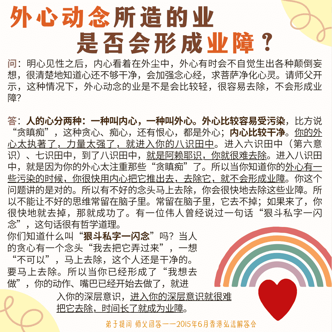 答:对。能够保持住这朵莲花的洁白,不是开玩笑,这不得了的。所以不能去看那些不好的东西了,不能去说那些不好的话……这个完全要很自律的,这个人才能一辈子修成,所以修心绝对是特别特别难的事情!
