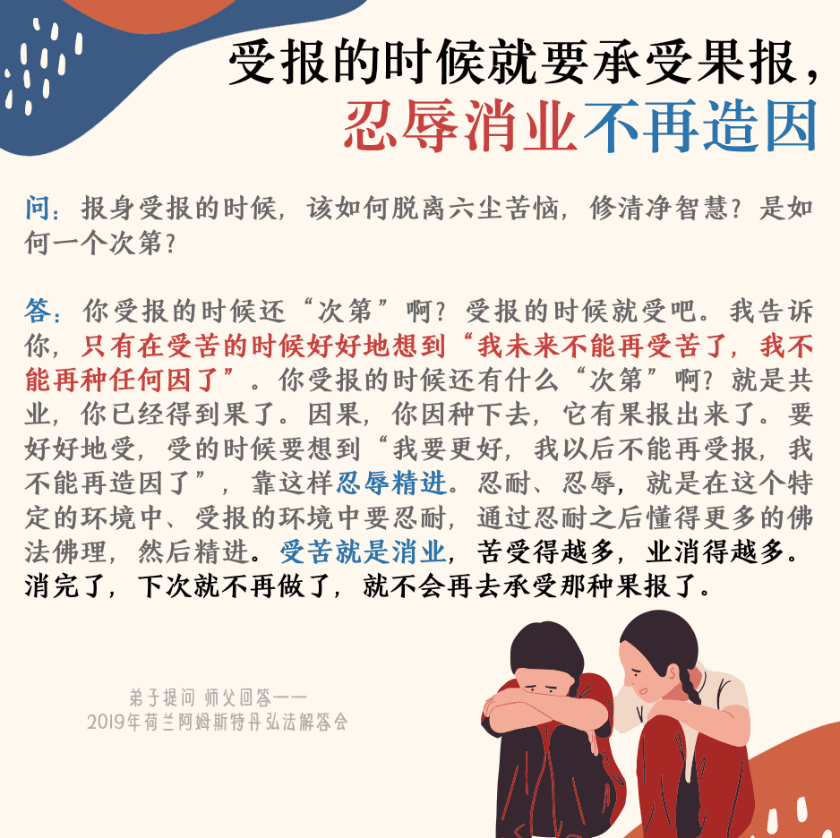 问:一位女师兄未学佛前做过色情行业的生意,她自己是老板,帮别人介绍顾客。现在已经许愿全素,一直帮当地师兄设佛台,做布施,很精进。请问,她之前这样的情况,能帮别人设佛台吗?设佛台的师兄会帮她背业吗?答:要看她现在消业消到什么程度。现在虽然很精进,但如果业障消得不够,她帮别人设佛台、做功德,都不是太好。
