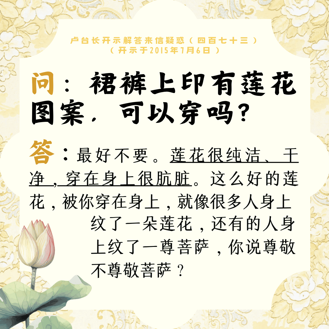 【Wenda】 20171105A 08:15 佛具上有莲花图案可以吗;菩萨像放得不正,邪气容易进来